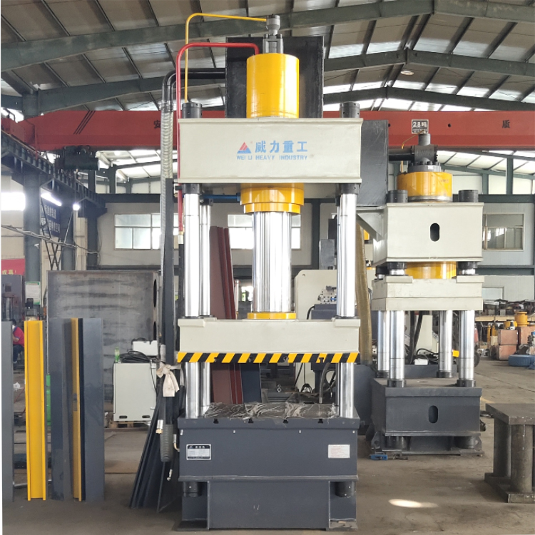 山東威力重工可以根據用戶需求設計定做液壓機工作臺面大小,比如600x600,800x800,1000x1000,900x800等。包括開口高度、油缸行程、噸位、工作速度等都可以設計定做。這里山東威力重工介紹的這臺80噸四柱液壓機(工作臺900x800)是一款普通的液壓機設備,河北客戶不久前從我公司訂購的。以此為例,簡單介紹下這臺設備的結構與特點。對需要訂購的液壓機客戶能有一定的幫助。