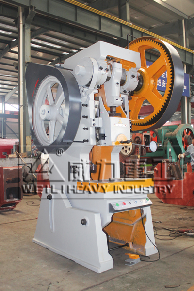 【產(chǎn)品描述】:可傾沖床是用于板料 沖壓的通用壓力機(jī), 可實(shí)現(xiàn)剪切,沖孔,落料,彎曲和淺拉伸成形等冷沖壓工序。工作時(shí)人工送料,另外配置送料裝置時(shí)可實(shí)現(xiàn)單機(jī)自動(dòng)化。 其結(jié)構(gòu)特點(diǎn)是:機(jī)身是用高強(qiáng)度鑄鐵制造,采用單盤氣動(dòng)塊式摩擦離合器和制動(dòng)器,無故障使用壽命遠(yuǎn)高于同類產(chǎn)品?;瑝K帶有壓塌式保險(xiǎn)裝置,當(dāng)機(jī)床超載時(shí),保險(xiǎn)器首先被壓塌,從而保證了整機(jī)不受損壞。其特點(diǎn):