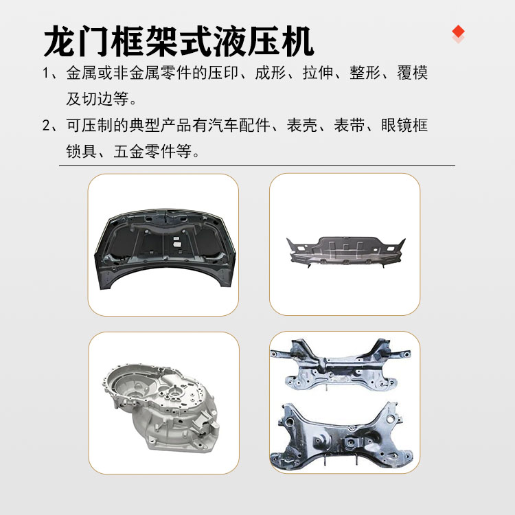 30噸龍門框架式液壓機(jī)是一種高效、精準(zhǔn)的壓力成型設(shè)備,廣泛應(yīng)用于各種金屬、非金屬材料的壓制、成型和校正工藝中。其獨(dú)特的龍門框架設(shè)計(jì)和強(qiáng)大的液壓驅(qū)動(dòng)系統(tǒng),使其具有出色的穩(wěn)定性和工作效率,成為現(xiàn)代工業(yè)生產(chǎn)中不可或缺的重要設(shè)備。